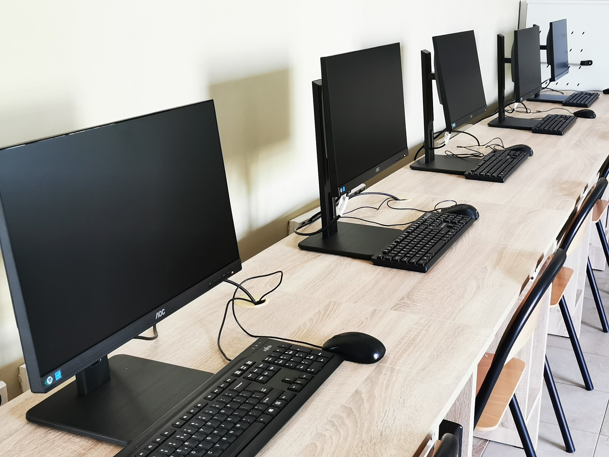 Zakupiono wyposażenie do dwóch pracowni komputerowych: wizualizacji i druku 3D oraz logistycznej. Pracownie składają się z 16 stanowisk komputerowych. Ponadto