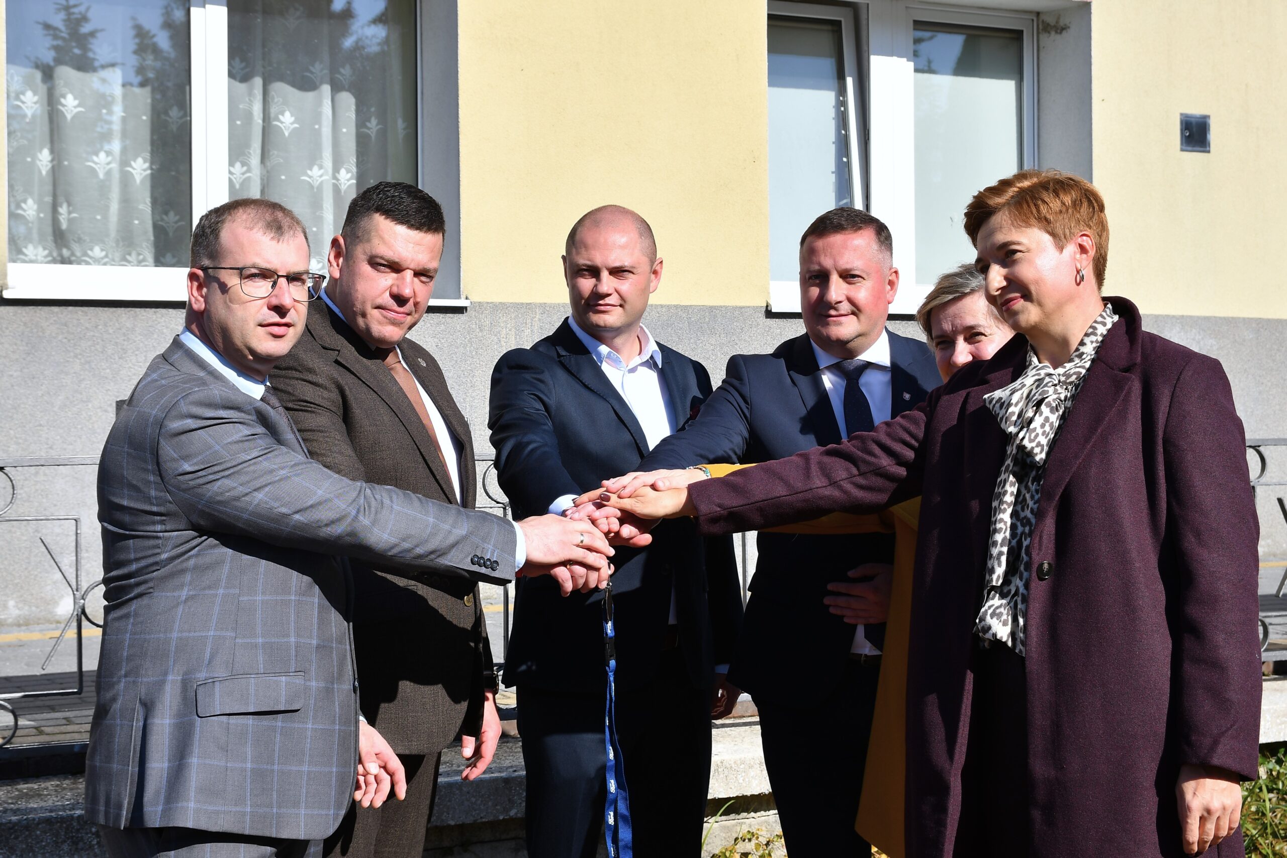 W uroczystym przekazaniu pojazdu uczestniczyli m.in. przedstawiciele Lubelskiego Oddziału Państwowego Funduszu Rehabilitacji Osób Niepełnosprawnych Beata Krzywicka-Nowosad i Małgorzata Górniak, przedstawiciele Zarządu Powiatu Starosta Daniel Słowik, Wicestarosta Michał Woźniak oraz Członek Zarządu Powiatu Artur Choma, przedstawiciele władz gminy Cyców na czele z Wójtem Martą Kociubą, a także Dyrektor MOW Karol Grochowski wraz z pracownikami.