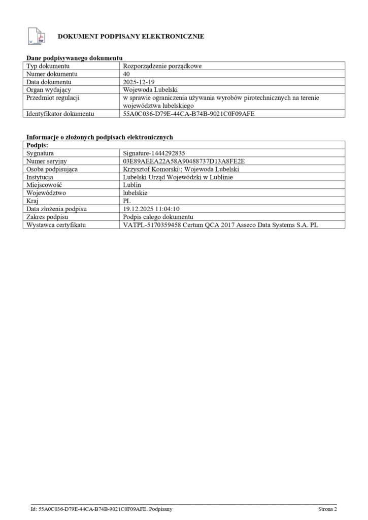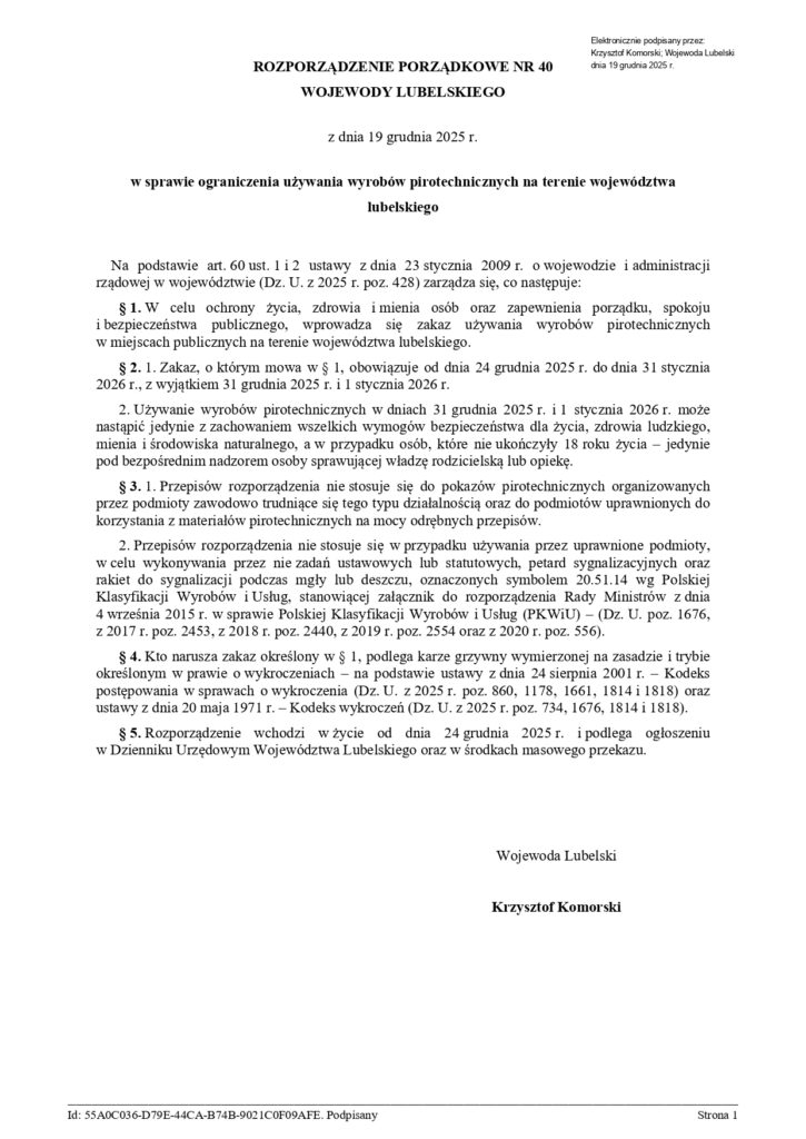 Uprzejmie informuję, że Prezes Rady Ministrów na podstawie art. 16 ust. 1 pkt 1 ustawy z dnia 10 czerwca 2016 roku o działaniach antyterrorystycznych (Dz. U. z 2025 r. poz. 194) podpisał Zarządzenia