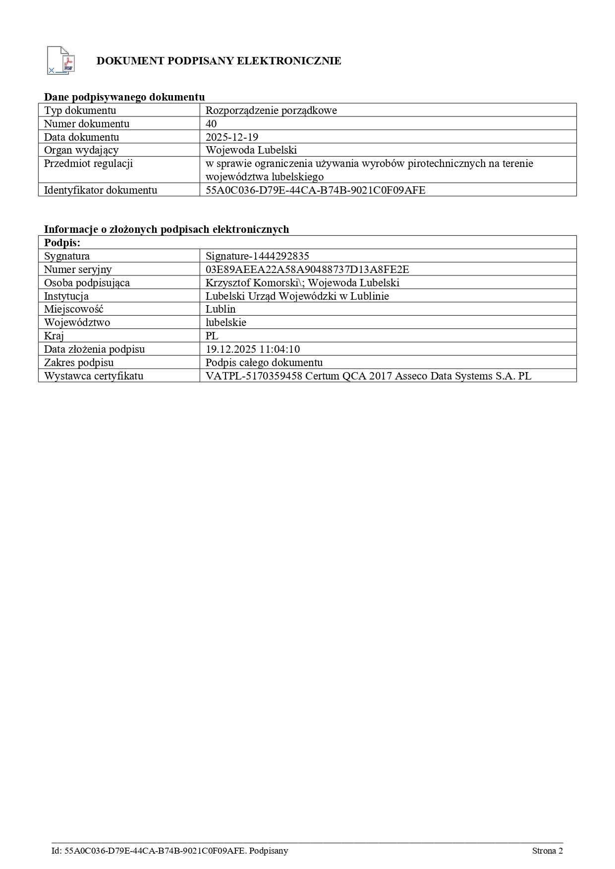 – nr 19 z dnia 28 maja 2025 roku w sprawie wprowadzenia drugiego stopnia alarmowego (stopień BRAVO) na całym terytorium Rzeczypospolitej Polskiej,