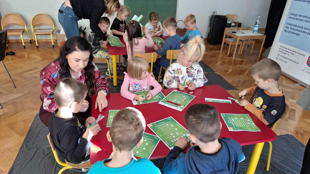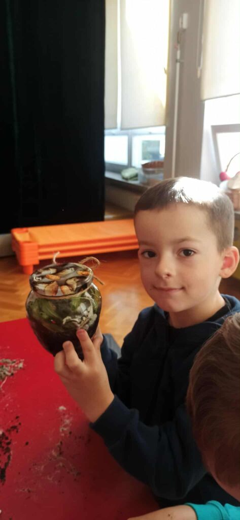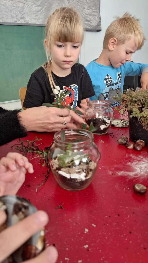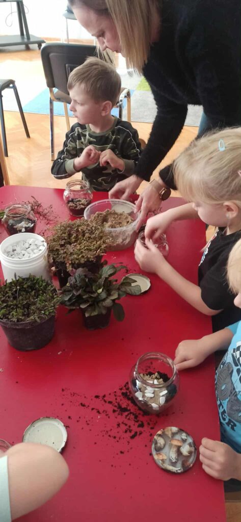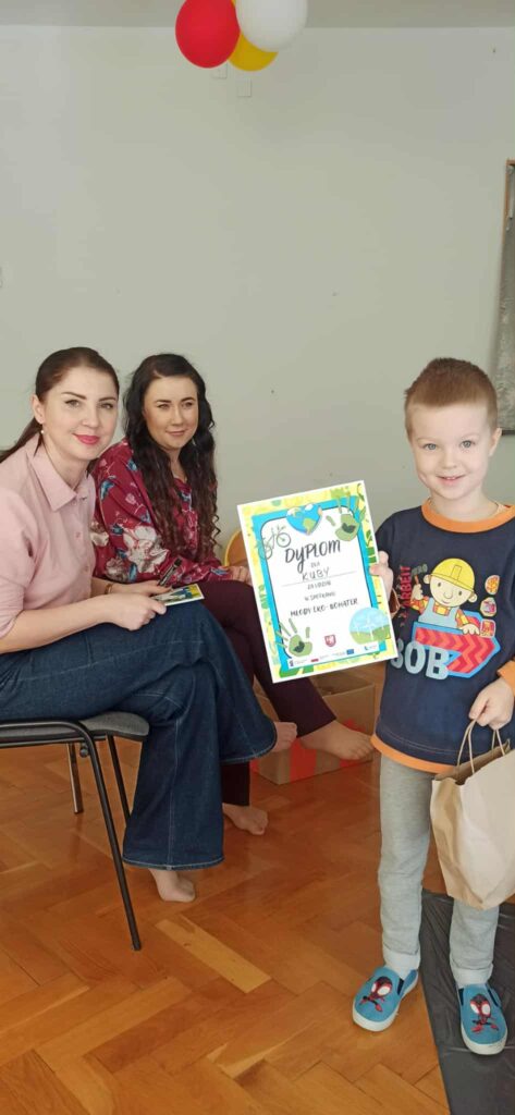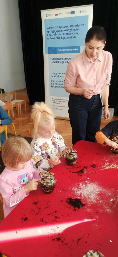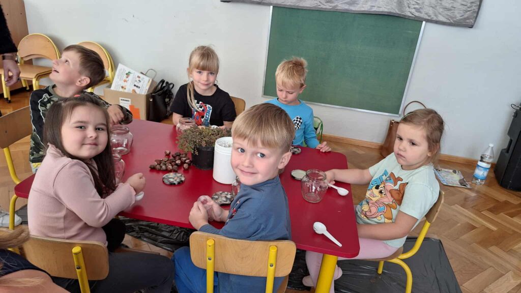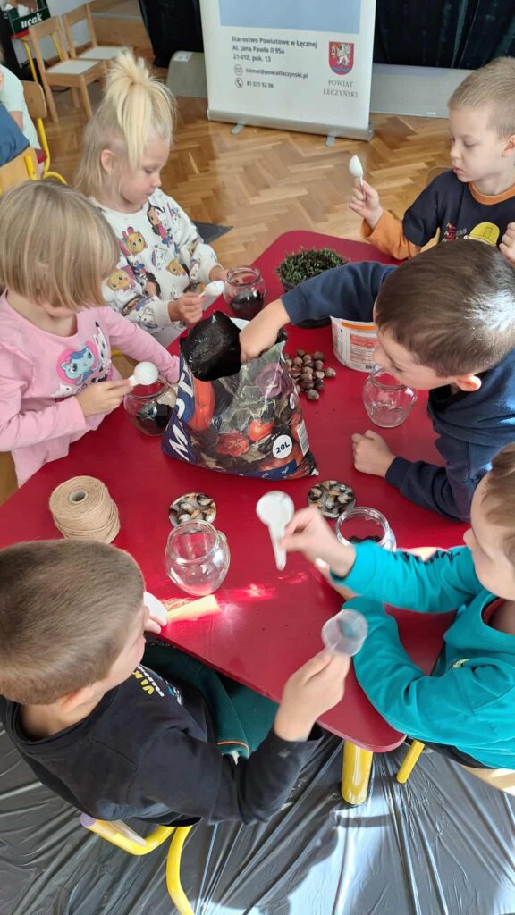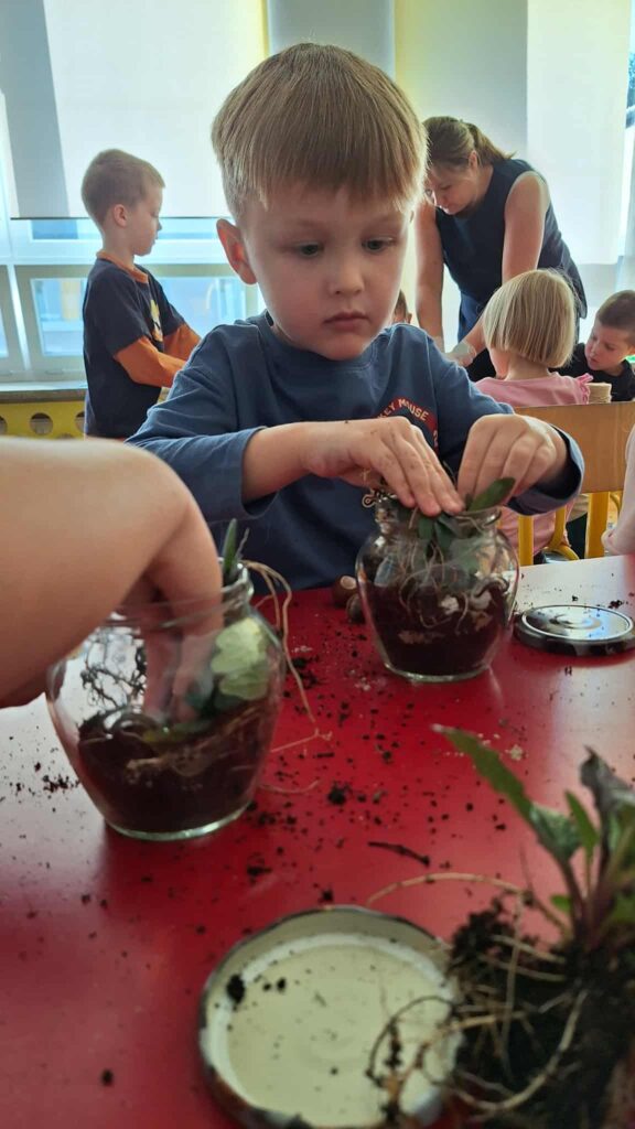 W drugiej części spotkania wspólnie odkrywaliśmy tajemnice lasu – jego mieszkańców oraz to, jakie korzyści daje nam obecność drzew. Każde dziecko mogło stworzyć własny mini las w słoiku, który zabrało do domu wraz z upominkiem i dyplomem „Eko-Bohatera”.